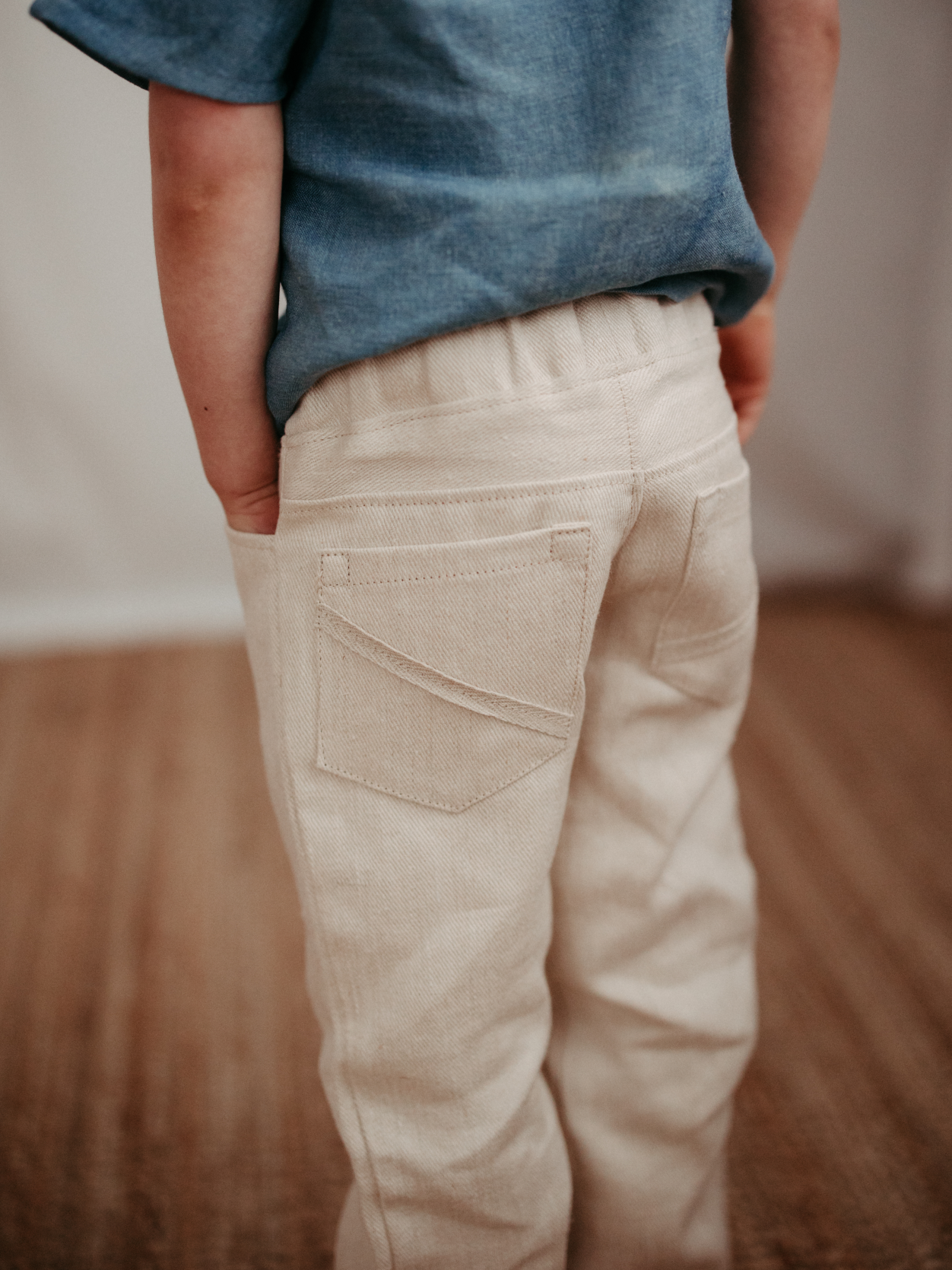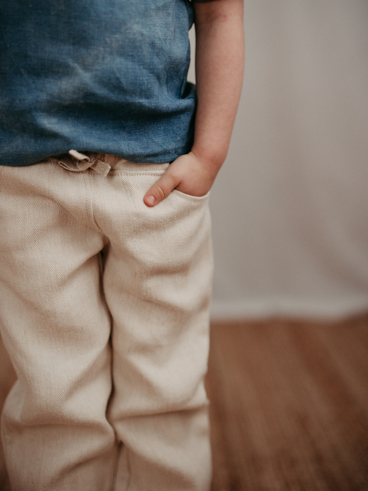 Huom! Hamppukangas vaihtuu pikkuhiljaa palttinasidoksesta toimikkaaseen. Kuvat materiaaleista löydät viimeisistä kuvista. Kankaan paksuus on sama, kudos on vain erilainen. Housuja valmistetaan alkuperäisestä materiaalista, niin kauan kuin kangasta on olemassa.
