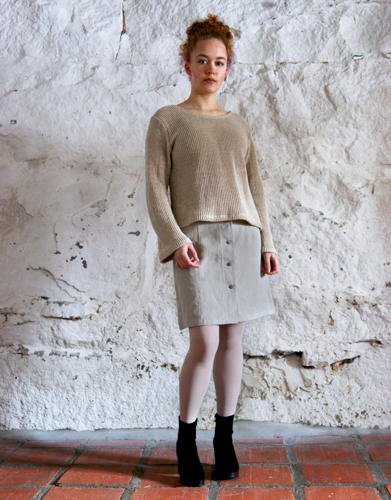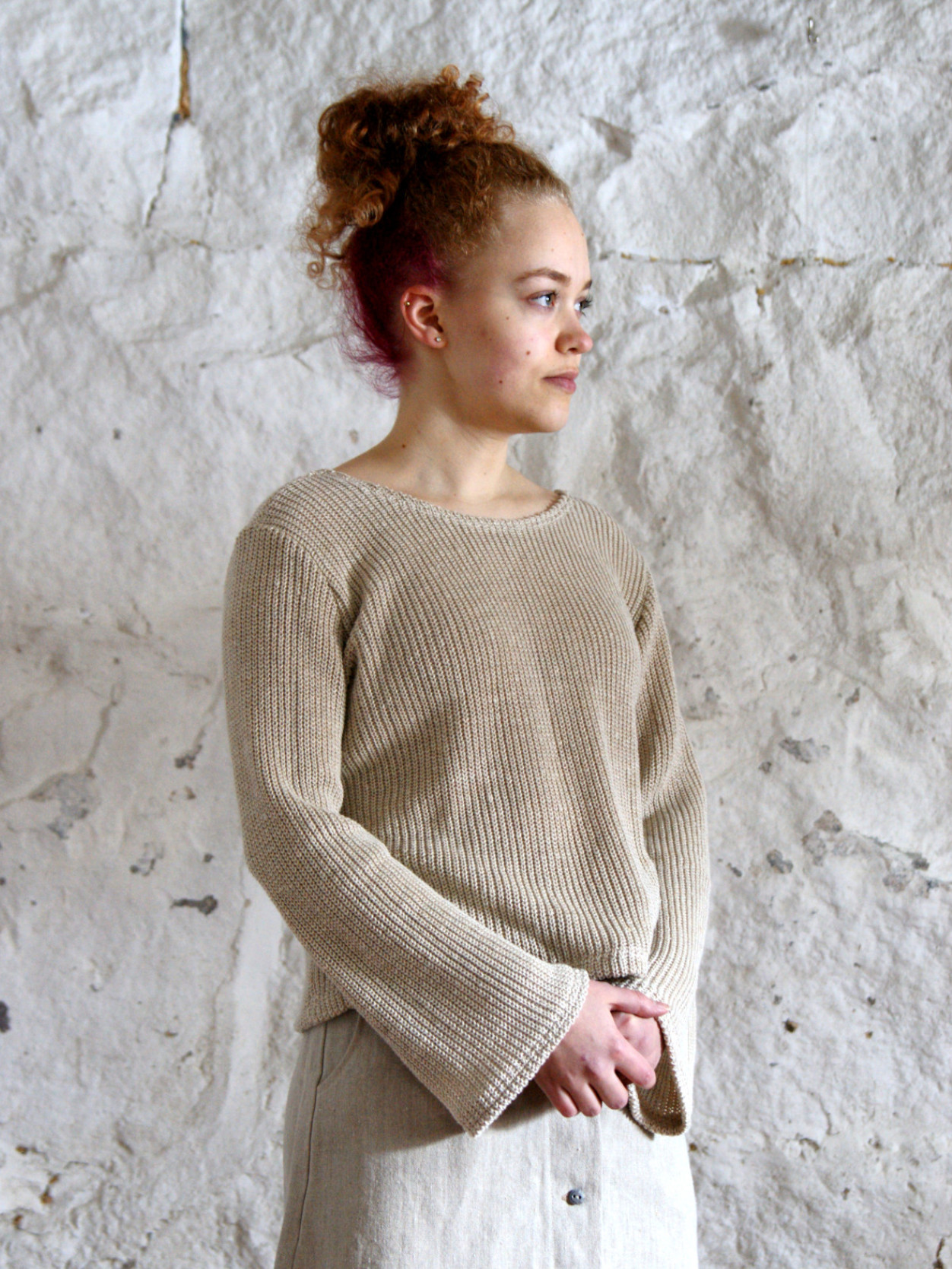 Kaunis hamppuneuloksesta valmistettu pitkähihainen paita. Vaate on mitoitukseltaan hieman väljä ja paidassa on levenevät hihat.