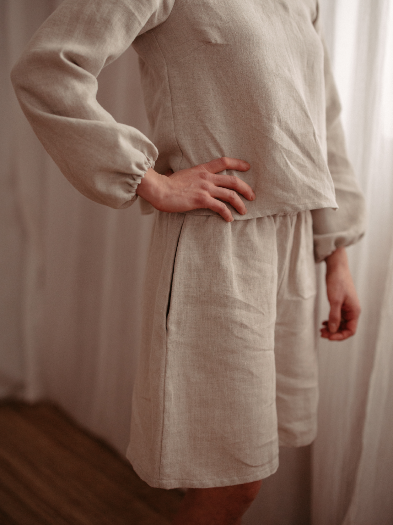 Vyötäröllä kuminauha ja sivusaumoissa taskut. Levenevät, väljät lahkeet.