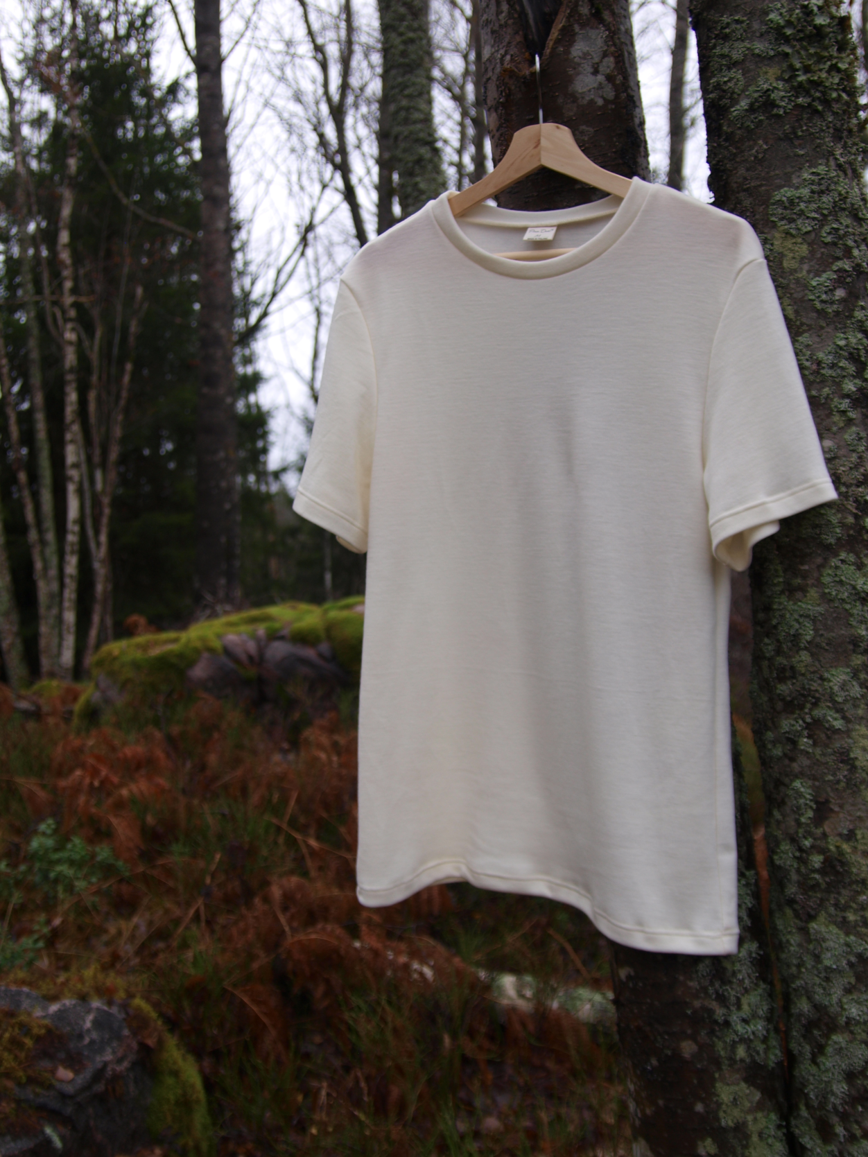 Merinovilla t-paita miesten mitoituksella, luonnonvalkoinen.